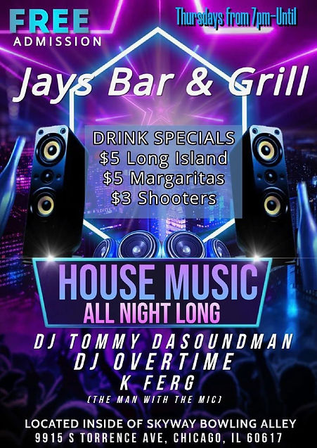 The 6 Grands Sports Bar Presents Jay's Sports Bar & Grill ( located inside of Skyway Bowl) Jay's Sports Bar offers a variety of entertainment options, that will include the Soul Train Music Video's, Old School Music Mixes from all the musical artist, by Charles Harris "aka" "J" is the New Bar Manager. There will be a host of weekly entertainment events, just to name a few; the NFL Package of all the Football games to be shown on the 6-60" flat screens to include the 120"inch projector Screen TV. Sunday Bears Nation, Monday/Thursday Night Football that you will watch along with enjoying the food/bar drink specials, Tipsy Tuesday, and Wednesday Karaoke.